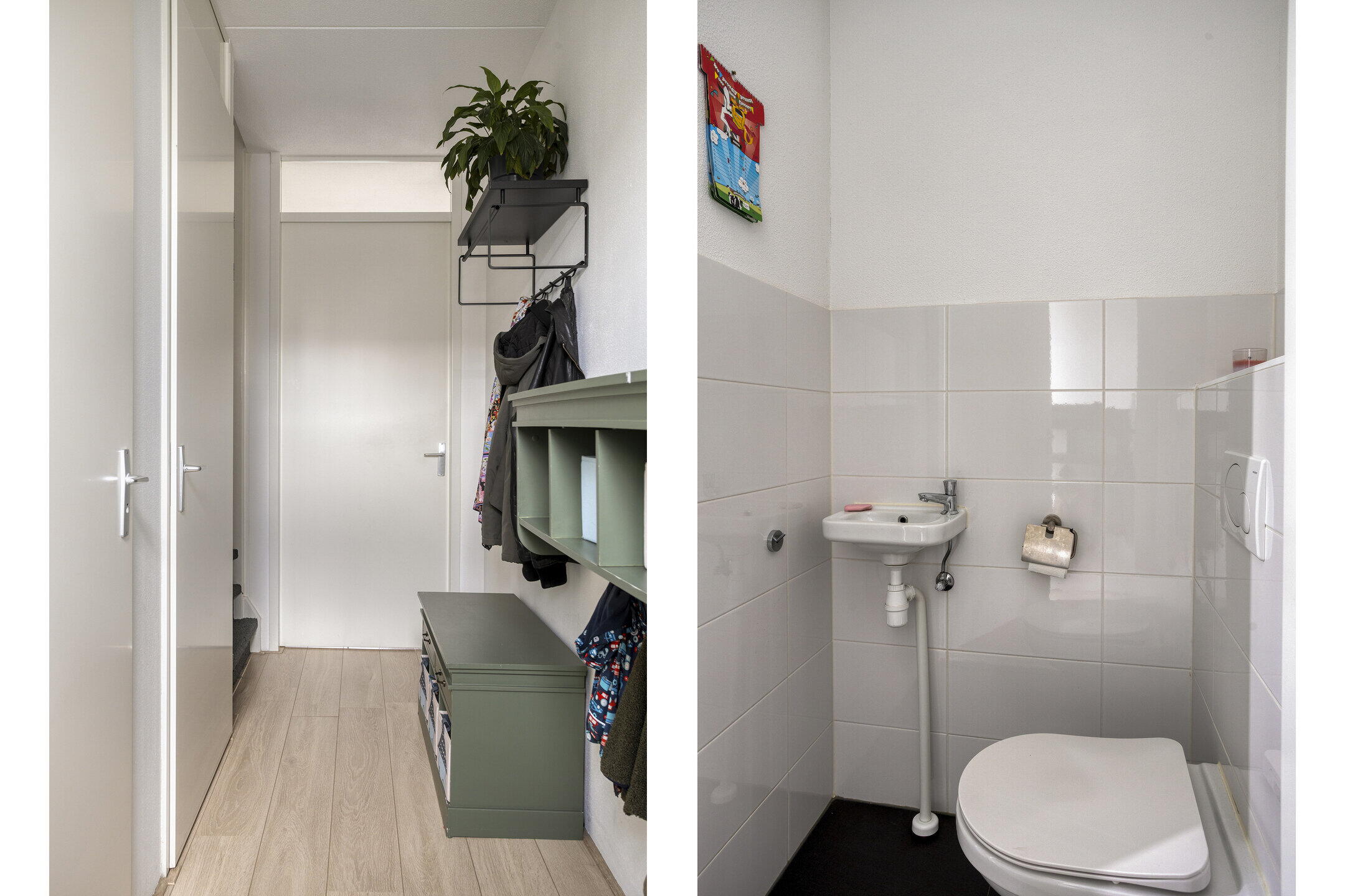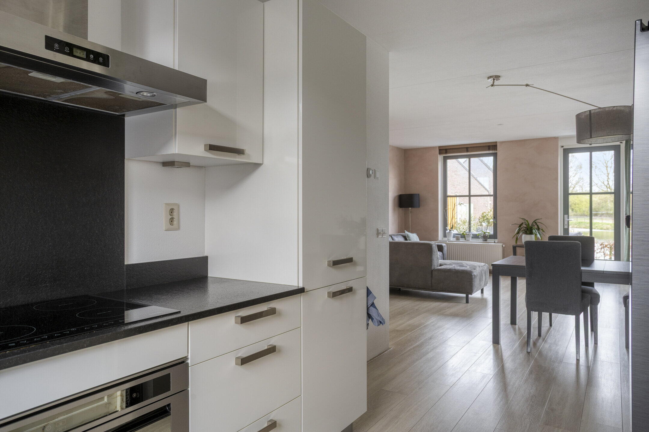 Entree met meterkast, nette toiletruimte met fontein, cv-ruimte (Intergas, 2010, eigendom) en trapopgang. Tuingerichte woonkamer met veel lichtinval door het zijraam en fraai uitzicht over het groen en het water. Via de loopdeur bereik je de achtertuin. Daarnaast een praktische trapkast. De keuken is aan de voorzijde gesitueerd en uitgevoerd in een degelijke opstelling met diverse inbouwapparatuur, waaronder een inductiekookplaat, combi (stoom)oven, afzuigkap en vaatwasser, vaatwasser en een ingebouwde combi koel-/vrieskast.